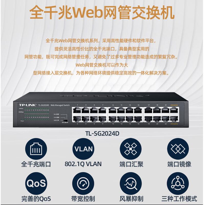 tplink24口千兆交換機16口48口百兆監(jiān)控專用網(wǎng)絡無線網(wǎng)線分流轉換交換器以太網(wǎng)企業(yè)web網(wǎng)管級VLAN匯聚SG2024D